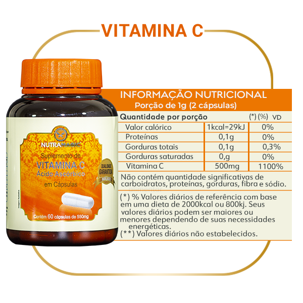 O Suplemento de Vitamina C Nutramagic fornece ao organismo quantidades suficiente de vitamina C para que esta possa atua no organismo.